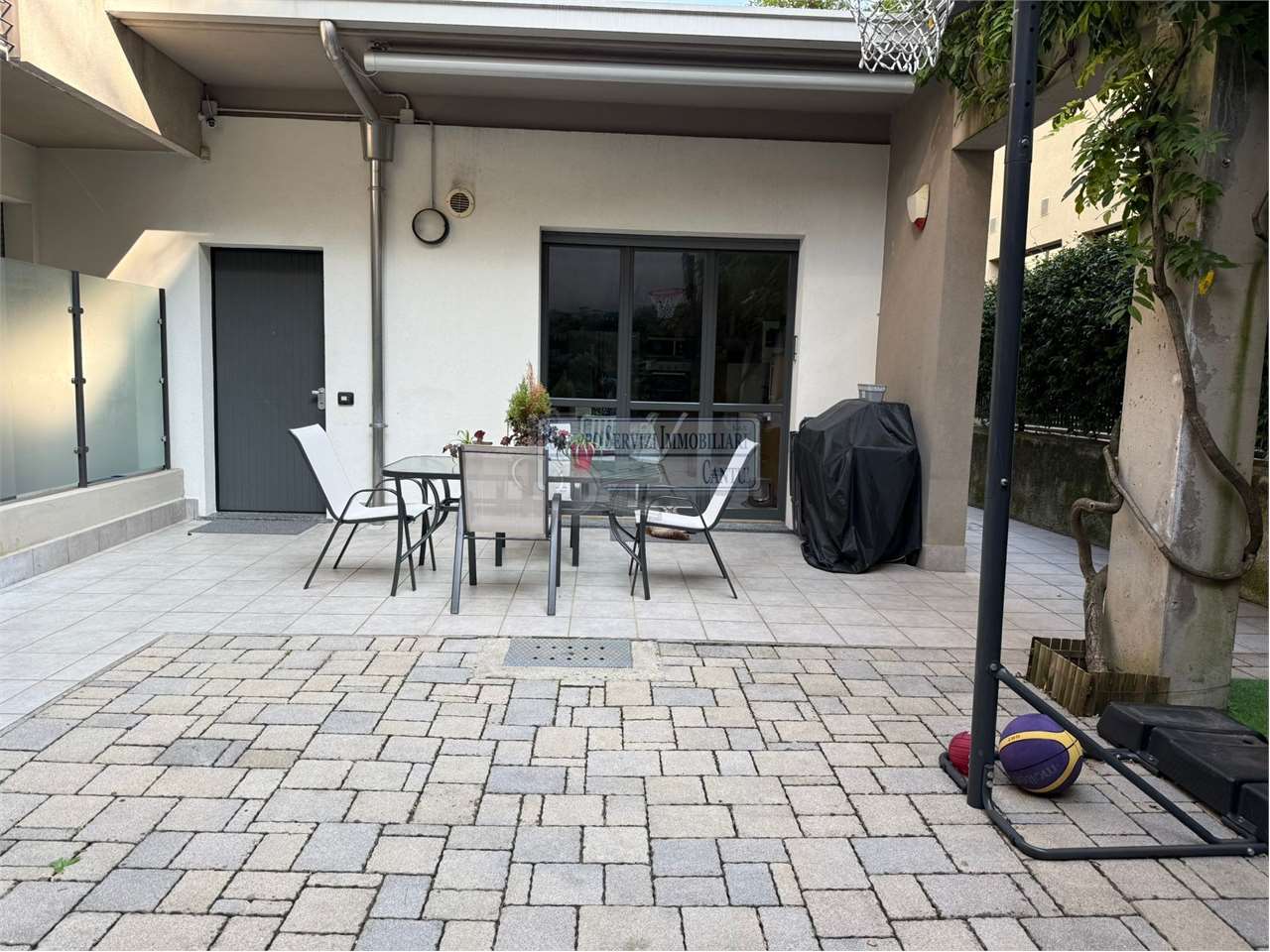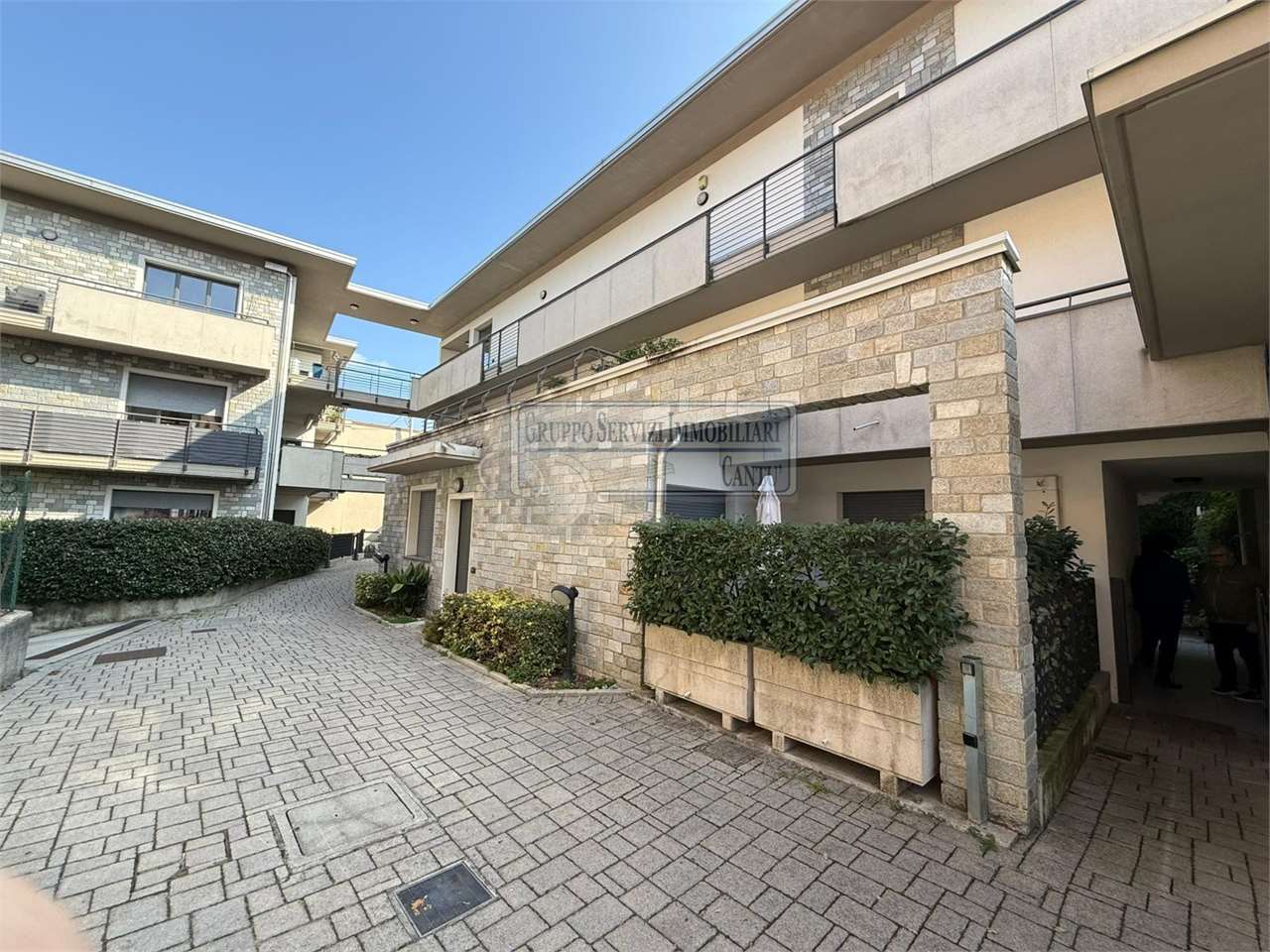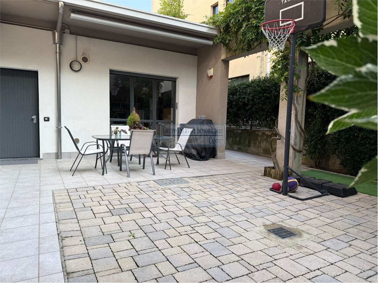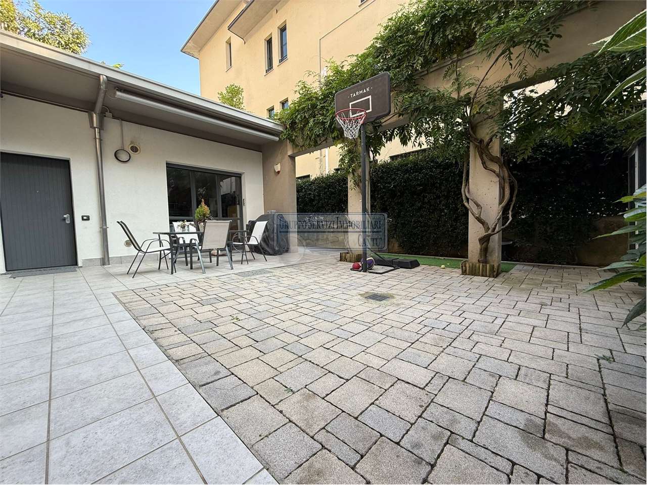 Nella centralissima viale Madonna, l'unica via alberata in Cantù, dove si trovano tutti i capolinea dei bus con direzione Mariano, Monza e Como, di fronte all'asilo nido, alle scuole primarie e secondarie ed al liceo, in una piccola e recentissima palazzina Edificata in Classe B, introvabile soluzione a piano terreno con ingresso indipendente di 4 locali doppi servizi con oltre 80 m² di area esterna cintata in proprietà, nata come giardino, oggi interamente pavimentata a terrazzo. Riscaldamento a pavimento, autonomo con caldaia a condensazione collegata ad un impianto privato di pannelli solari per la produzione di acqua calda sanitaria. Libera sui tre lati con serramenti in legno a vetrocamera, con ventilazione meccanica puntuale nella zona giorno, e l'intero appartamento climatizzato con un impianto canalizzato. L'accesso si ha dal cancelletto privato e da un corridoio coperto che ci proietta subito sull'intera area in proprietà dove trova spazio sia il tavolo esterno e l'angolo BBQ, per il papà e la mamma, sia il canestro per i ragazzi. La zona giorno è interamente esposta a sud con una ampia vetrata che ci collega al terrazzo esterno, dove troviamo subito la zona tavolo BBQ protetta da una tenda motorizzata. Disimpegnata una prima zona notte composta da una camera allestita con un lettone ad una piazza e mezza ed un bagno padronale con vasca. Perfettamente disimpegnata una seconda zona notte dove troviamo due camere ed un bagno, anch'esso finestrato e allestito con doccia e lavanderia. Questa soluzione è priva di barriere architettoniche. Possibilità di abbinare una box doppio al prezzo aggiuntivo di €. 25.000. Spese gestioni condominiali €. 1.300 annue.
