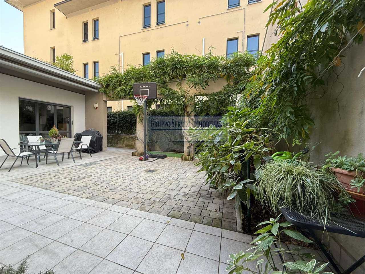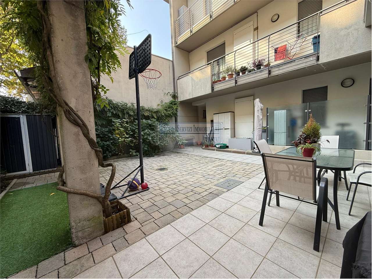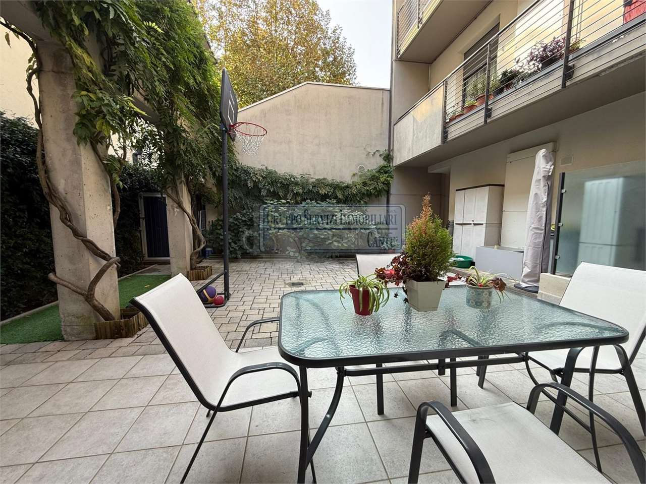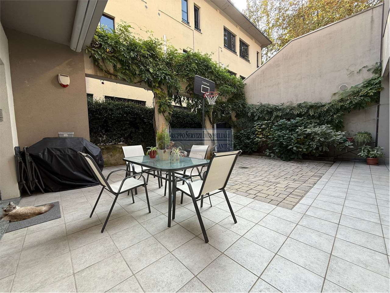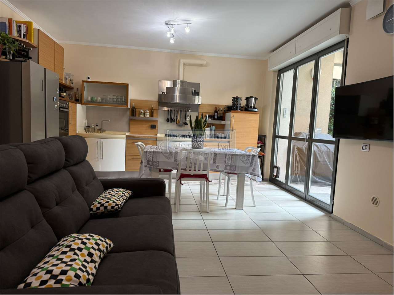 Nella centralissima viale Madonna, l'unica via alberata in Cantù, dove si trovano tutti i capolinea dei bus con direzione Mariano, Monza e Como, di fronte all'asilo nido, alle scuole primarie e secondarie ed al liceo, in una piccola e recentissima palazzina Edificata in Classe B, introvabile soluzione a piano terreno con ingresso indipendente di 4 locali doppi servizi con oltre 80 m² di area esterna cintata in proprietà, nata come giardino, oggi interamente pavimentata a terrazzo. Riscaldamento a pavimento, autonomo con caldaia a condensazione collegata ad un impianto privato di pannelli solari per la produzione di acqua calda sanitaria. Libera sui tre lati con serramenti in legno a vetrocamera, con ventilazione meccanica puntuale nella zona giorno, e l'intero appartamento climatizzato con un impianto canalizzato. L'accesso si ha dal cancelletto privato e da un corridoio coperto che ci proietta subito sull'intera area in proprietà dove trova spazio sia il tavolo esterno e l'angolo BBQ, per il papà e la mamma, sia il canestro per i ragazzi. La zona giorno è interamente esposta a sud con una ampia vetrata che ci collega al terrazzo esterno, dove troviamo subito la zona tavolo BBQ protetta da una tenda motorizzata. Disimpegnata una prima zona notte composta da una camera allestita con un lettone ad una piazza e mezza ed un bagno padronale con vasca. Perfettamente disimpegnata una seconda zona notte dove troviamo due camere ed un bagno, anch'esso finestrato e allestito con doccia e lavanderia. Questa soluzione è priva di barriere architettoniche. Possibilità di abbinare una box doppio al prezzo aggiuntivo di €. 25.000. Spese gestioni condominiali €. 1.300 annue.